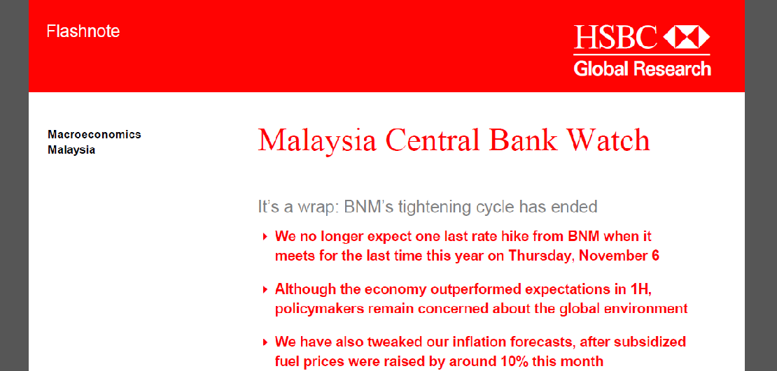 But the case couldn't be more different for Malaysia, we thrive on a weaker dollar. I guess some people just took it as an excuse to take some profit after quite a sustained run for second liners over the last week or so. I expect things to return to normal quickly.